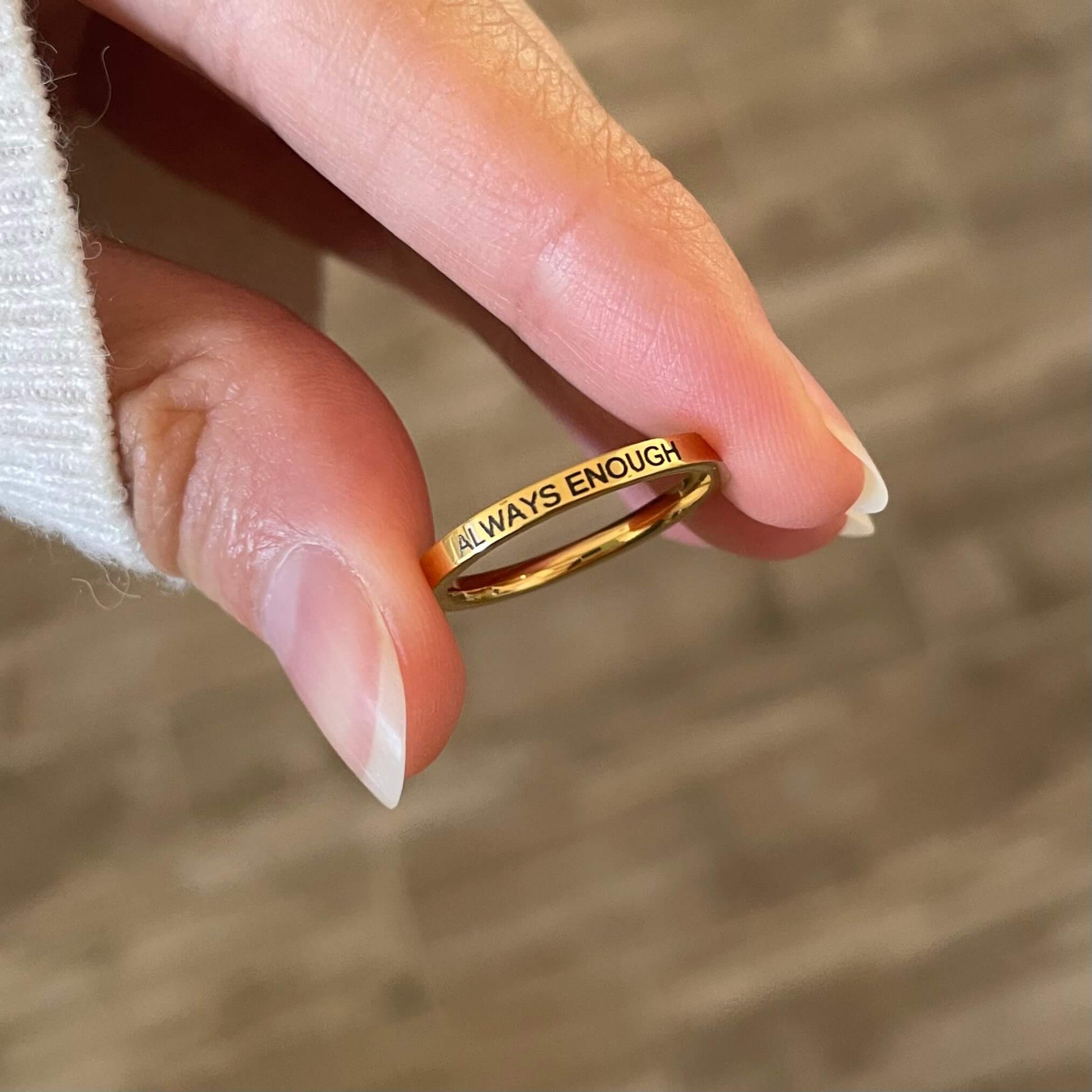Engraved on this dainty stacking ring is a gentle reminder: you are always enough, and you are never too much.